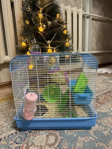 Продается хомяк джунгарик вместе с клеткой с комплектом аксессуаров. - Двухуровневая конструкция: нижний и верхний ярусы, удобные пластиковые полки и пандус. - Встроенное беговое колесо для актив...