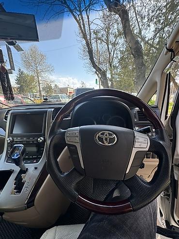 Toyota Alphard V, белый минивэн с бензиновым V6. Просторный салон с тремя рядами сидений, раздвижные боковые двери (правая — электрическая), задние стекла тонированные. Легкосплавные диски, задний ...