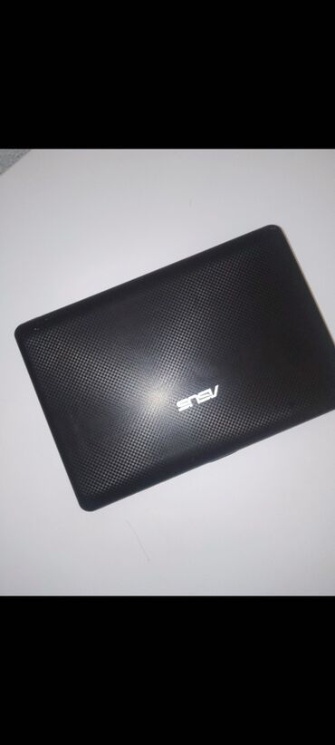 Компактный 10-дюймовый нетбук серии Eee PC с русско-английской раскладкой клавиатуры. Черный корпус с текстурой “карбон”, матовая рабочая панель, крупный тачпад с выделенной кнопкой. В верхней рамке экрана – веб‑камера для видеосвязи. На крышке — логотип ASUS.