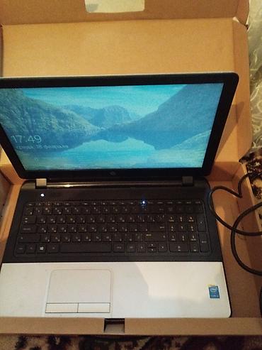 Ноутбук HP 15, серебристо‑черный корпус, диагональ экрана . На борту процессор Intel (наклейка Intel Inside), полноразмерная клавиатура с цифровым блоком, тачпад с двумя отдельными кнопками. Веб‑камера над экраном, индикаторы питания и Wi‑Fi, решетка динамиков над клавиатурой.