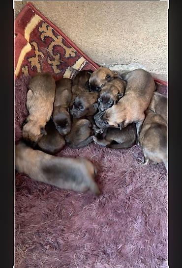 Щенки (помет). На фото — многочисленный выводок короткошёрстных щенков рыже-коричневого окраса с затемнениями на мордочках и спинке. У всех компактное телосложение, густая плюшевая шерсть, тёмные ушки и хвостики. Щенки находятся вместе на мягкой подстилке, активные, хорошо едят и спят кучкой. Подойдут как для семьи, так и для охраны двора/дома после подрастания.