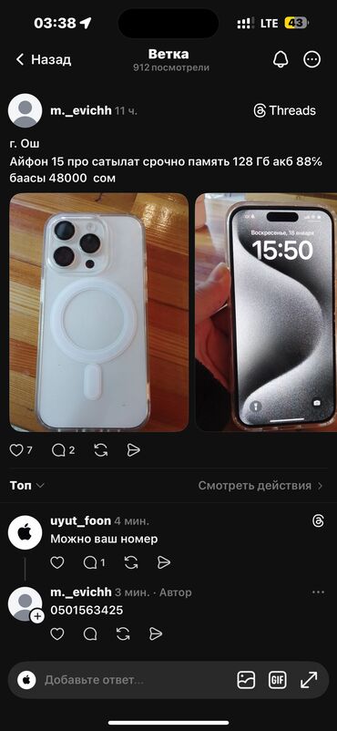 ◾Ассаламу алейкум ◾Айфон 15 pro 😍 ◾FACE ID ✔️ ◾True Tone ✔️ ◾Akb 81 😍 ◾Память 128 😍 ◾Телефон состояние 10/9✔️ ◾Все радное ничего не менялся ✔️ ◾ГАРАНТИЯ ЕСТЬ💯 ◾Обмен ❌ ◾Есть мелкие цара...