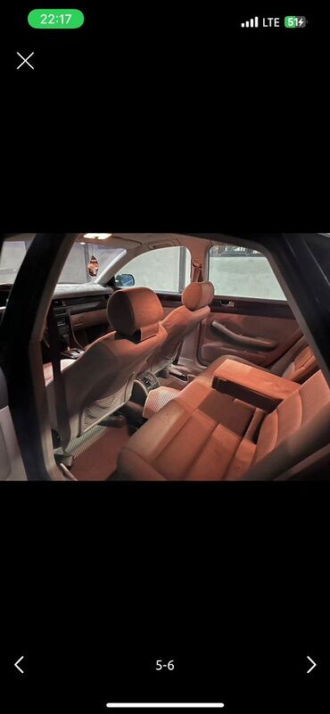 Audi A6 C5 седан, тёмно‑синий цвет, тонированные стёкла. Просторный салон из чёрной кожи с выраженной боковой поддержкой сидений. Автоматическая коробка передач с селектором на центральной консоли....