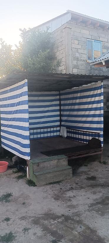 Сору тапчан сатылат - Каркас: сочетание деревянных стоек и металлических поперечин/перил. - Кровля: листы волнистого шифера на деревянных балках. - Конфигурация: П-образная ограждающая рама с де...