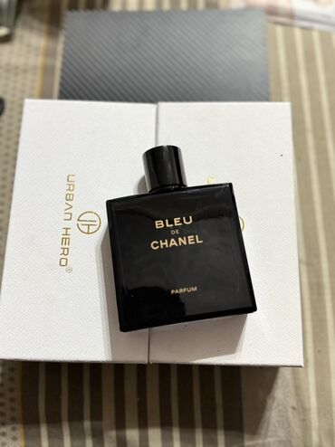 - Флакон: лаконичный квадратный чёрный стеклянный флакон с магнитной крышкой (судя по дизайну), золотистая надпись BLEU DE CHANEL PARFUM.
