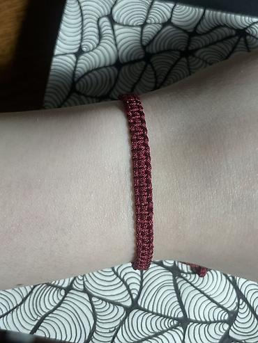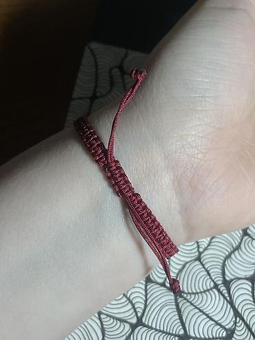 Браслет-оберег из шнура, плетение макраме - Материал: прочный вощеный/сатиновый шнур бордового цвета. - Плетение: ровное узловое (макраме) по всей длине. - Застежка: регулируемая — скользящий узел...