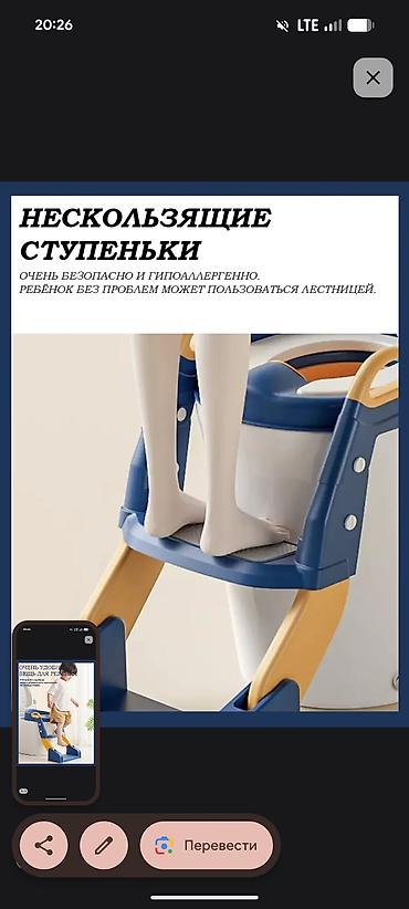 Детское сиденье-лестница для приучения к унитазу. Характеристики: - Совмещает сиденье-переходник и устойчивую лестницу со ступенькой. - Подходит к большинству стандартных унитазов (видна регулиров...