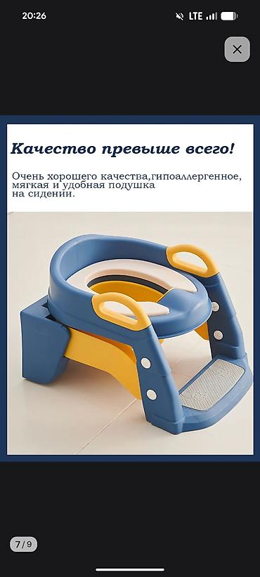 Детское сиденье-накладка на унитаз с ручками.Новая не пользовались. - Материал: твердый пластиковый каркас с мягким и гладким сиденьем. - Цвет: синий каркас; сиденье с яркими рисунками персонажей ...