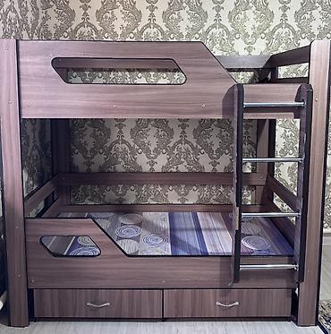 Двухъярусная кровать с лестницей и выдвижными ящиками.
