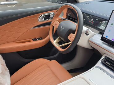 - Просторный интерьер с двухцветной отделкой: коричневая перфорированная кожа (ромбовидная прострочка) и светлые панели