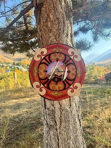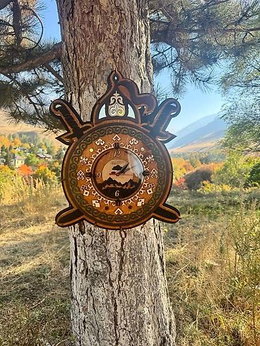 Настенные часы «20 жылдык» (юбилейные) - Декоративные настенные часы с крупной композицией «20», оформленные в национальном стиле с орнаментом. - Материал: ламинированная фанера/МДФ, фигурная выре...