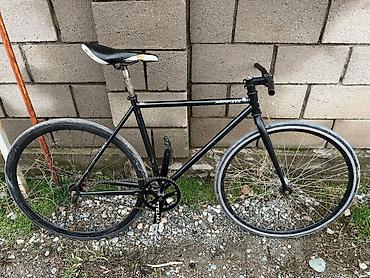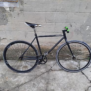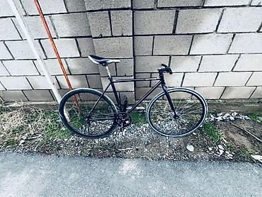 Фикс-байк/синглспид на легкой стальной раме. - Рама: сталь, геометрия трек/город, размер ориентировочно M (под рост ~165–180 см). - Колеса: 700C, обода с наклейками; покрышки шоссейного типа. - Пр...
