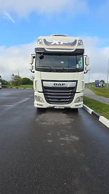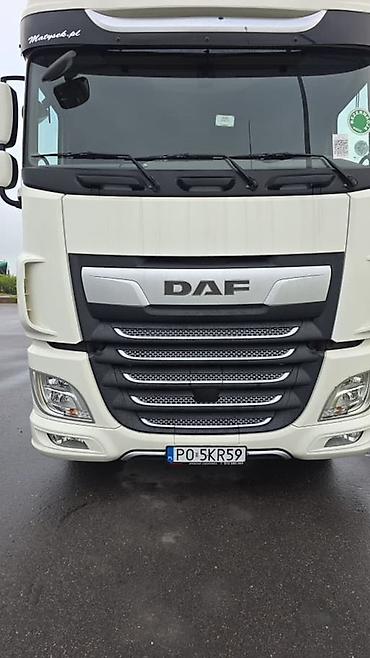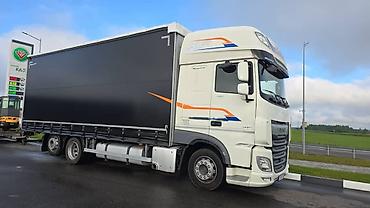 - Тягач DAF XF с высокой кабиной Super Space/Space Cab, аэродинамический обвес, фирменная решетка радиатора DAF, дневные ходовые огни, зеркала на длинных кронштейнах.