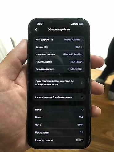 - Модель: iPhone 13 Pro Max (номер модели MLKP3LL/A, указан в настройках)