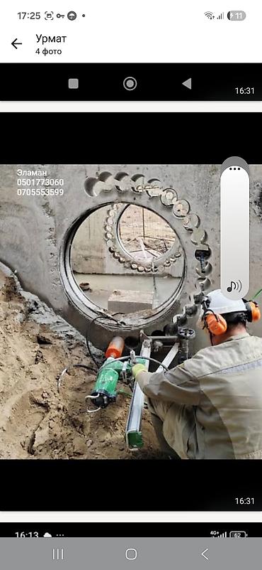 Услуга: алмазное бурение и резка бетона/кирпича. - Точные круглые отверстия под разные диаметры в бетоне, кирпиче, железобетоне. - Работы для: вентиляции, дымоходов, канализации, отопления, электр...
