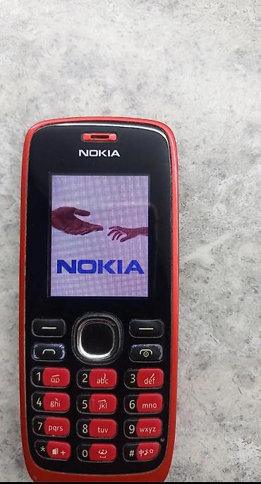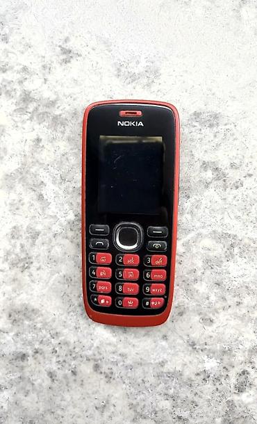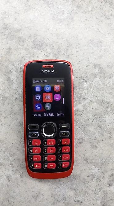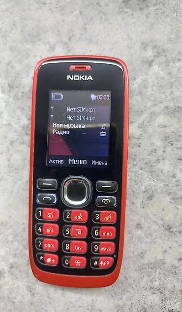 Кнопочный телефон Nokia (классическая модель серии 1xx). - Компактный корпус, красная задняя крышка, черная передняя панель. - Цветной экран. - Физическая цифровая клавиатура с крупными кнопками ...