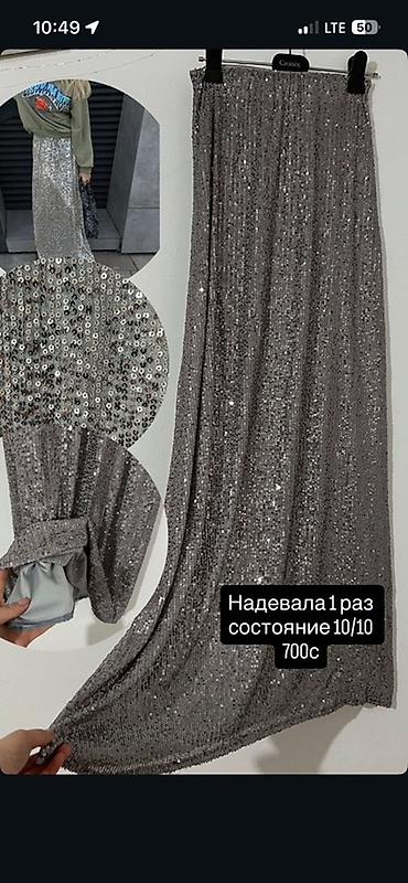 3) Юбка миди полностью в пайетках, серебристо‑серый