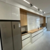 - Материал: ЛДСП/МДФ с фактурными вставками под плетение (раттан), рамочный профиль в тёплом оттенке ореха.