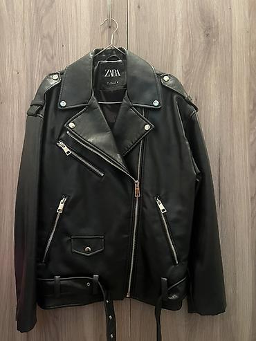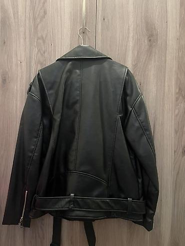 - Классическая черная куртка-косуха из гладкой искусственной кожи.
