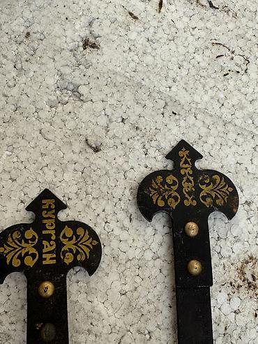 - Материал: сталь с декоративными латунными заклёпками и росписью золотой краской («Курган», растительный орнамент).