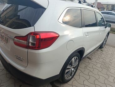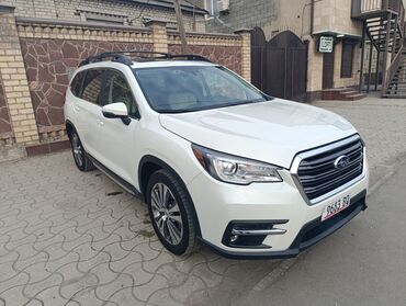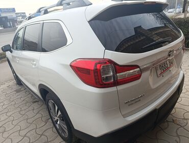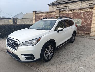 Subaru Ascent, 7–8‑местный кроссовер с полным приводом Symmetrical AWD. Белый кузов, фирменная решётка радиатора, светодиодная оптика, рейлинги на крыше. Эмблемы на корме: Ascent и Symmetrical AWD.