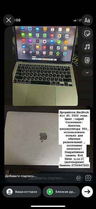 💻 MacBook Air (M1) — компактный и быстрый ноутбук для работы, учёбы и повседневных задач. Отлично подойдёт для: Photoshop, Illustrator, Lightroom, Figma, монтажа Full HD в Final Cut Pro / Premiere ...