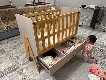 Манеж-кровать, Б/у, С комодом, Дерево