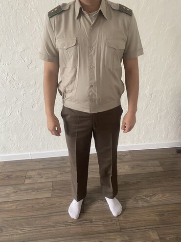 - Рубашка светло-бежевого цвета с коротким рукавом, погонами с зелеными кантами и звёздами, два накладных кармана с клапанами.