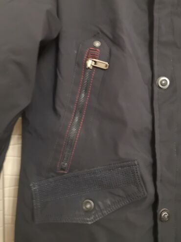 - Декоративные элементы: контрастная прострочка красными нитками вокруг молний, вставки под кожу на клапанах нижних карманов.