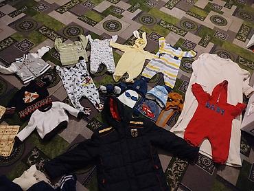 Детские вещи для мальчика от новорождённого до примерно 2–3 лет (разные размеры по росту). В наборе: - Тёплые комбинезоны/слипы: белый стёганый с ушками и медвежонком на груди; красный с капюшоном...