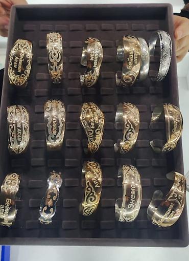 - Браслеты-манжеты с национальным орнаментом и гравировкой на кириллице. Широкие и средние модели, комбинированные оттенки металла (золото/серебро по цвету), ажурные узоры, плавные линии, часть браслетов с надписями.