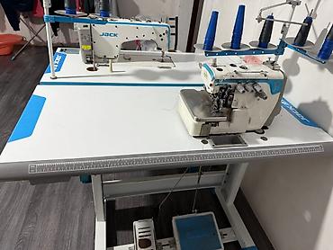 - Оверлок JACK (3/4/5‑ниточный, промышленная голова) на отдельном столе. Узел обрезки и прижимная лапка, регулировка натяжения нитей, масляная ванна. Педальный привод, многоярусный держатель для конусов ниток, стол с линейкой-разметкой.