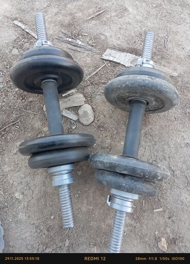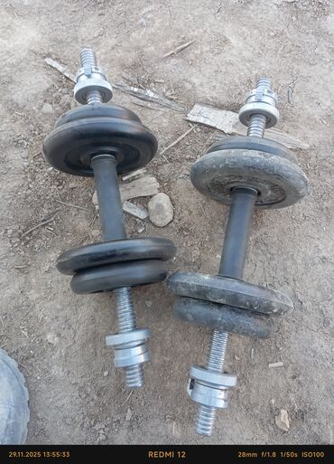 - Комплект: 2 гантели с установленными блинами и резьбовыми замками