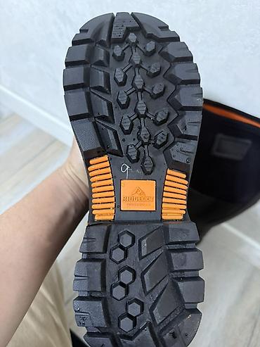 - Подошва: массивная протекторная, износостойкая, с глубоким рисунком для надежного сцепления на грязи и мокрых поверхностях.