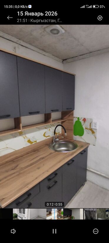 Квартира берилет тунгуч жактан жаны салынган уй ремонт свежий, 5 айдан жогору жашаган беребиз ,Сдаю Квартира 25000, депозит 10000 сом - Кухонный блок с мойкой, столешницей, верхними и нижними шкафа...