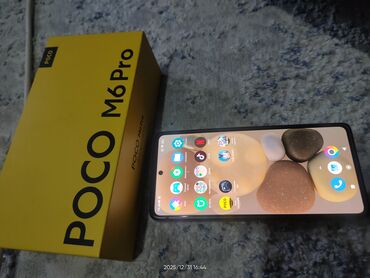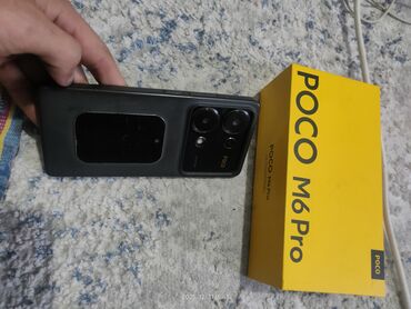 - Комплектация на фото: смартфон и фирменная коробка POCO M6 Pro; установлен защитный чехол.