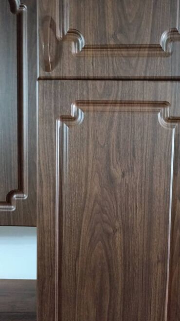 - Материал: ЛДСП, тиснение под натуральный орех, фигурная фрезеровка на фасадах.