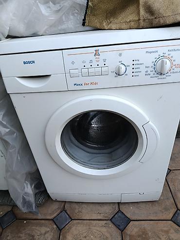 - Bosch Maxx for Kids — компактная фронтальная машина с понятной механической панелью, выбором программ (хлопок, синтетика, шерсть, быстрая стирка), отдельными кнопками полоскания/отжима/слива и регулятором скорости отжима до 900 об/мин.