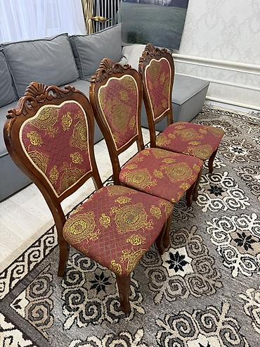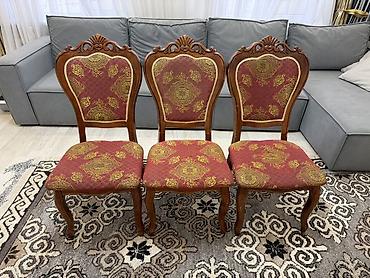 - Материал каркаса: массив дерева с резными декоративными элементами на спинке и изогнутыми ножками.