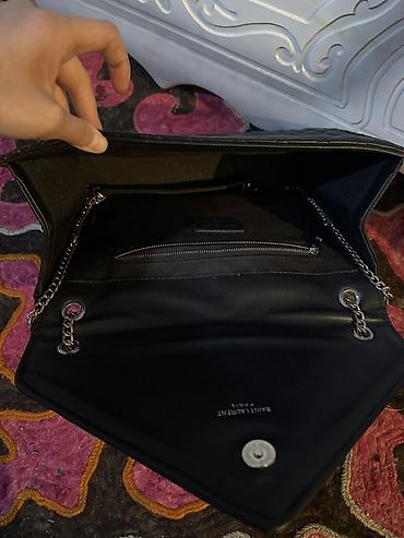- Фурнитура: металлическая монограмма YSL и цепочная лямка с кожаными вставками, серебристый тон.