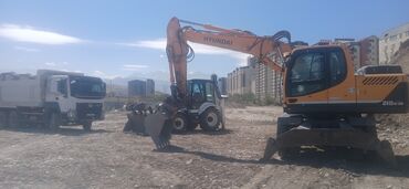 Услуги экскаватора, г. Каракол. Колесные экскаваторы (на фото Volvo/Hyundai и компактные модели) для земляных и дорожных работ: - копка котлованов, траншей под коммуникации; - планировка и профили...