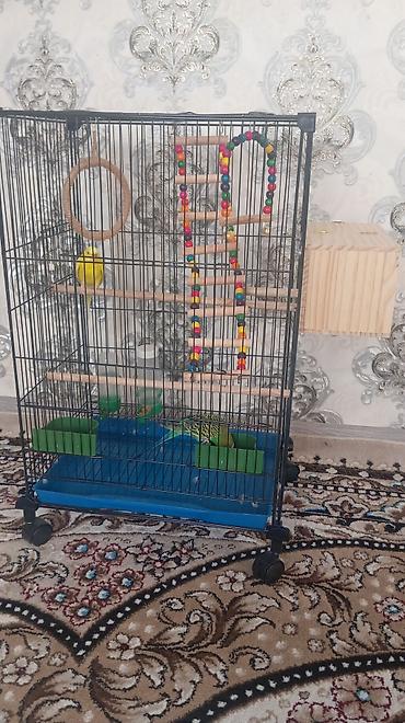 Волнистые попугаи с полной экипировкой.