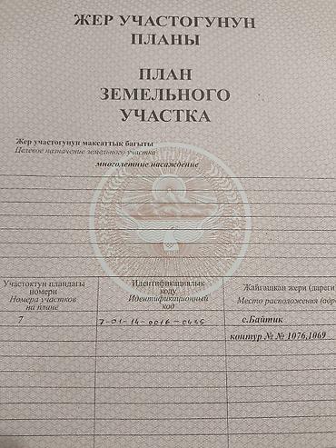 Продаю Участок Байтикский айыл окмот село Арчалы 200 соток (2гектара) частная собственность Красная Книга назначение земельного участка под многолетние насаждения (САД) в данный момент на участке растет клевер