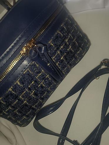 - Материалы: гладкий кожзам (корпус и ремень) + текстильная твидовая вставка с золотистой нитью.