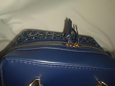 - Цвет: темно-синий (navy) с блестящими золотистыми акцентами на ткани и фурнитуре.
