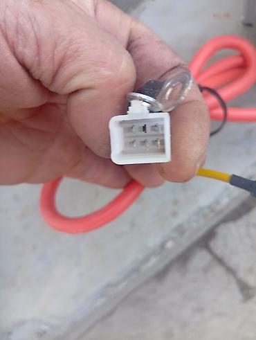- Подключение: выведен силовой кабель оранжевого цвета с разъёмом и кольцевыми клеммами; присутствуют сигнальные/датчиковые провода (многоцветные).