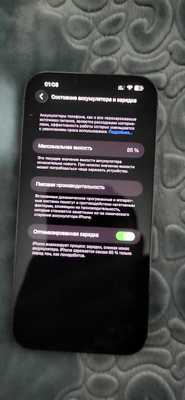 - Аккумулятор: максимальная ёмкость 85%, включена «Оптимизированная зарядка»