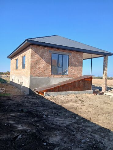 Продаётся двухэтажный кирпичный дом с четырёхскатной крышей из профнастила.