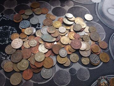 Материал разный: медно-бронзовые, никелевые, алюминиево-бронзовые, стальные; диаметр от мелких копеек до крупных медалей. На фото показано реальное наполнение — большая россыпь монет плюс отдельная подборка из более заметных экземпляров. Отлично подходит для пополнения коллекции, обменов и изучения разновидностей штемпелей и годов выпуска.