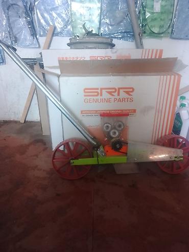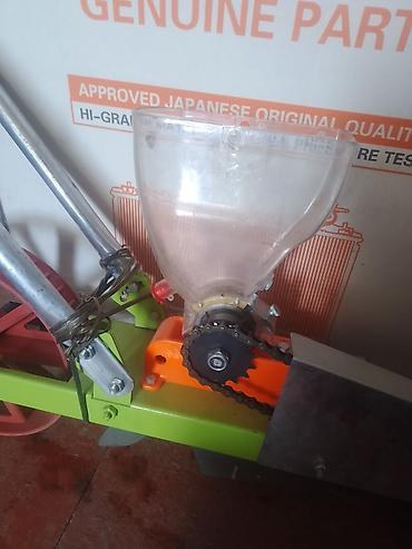 - Конструкция: двухколёсная рама с длинной рукоятью, прозрачный бункер для семян, механический высевной узел с цепной передачей, сошник и прикатывающие колёса.